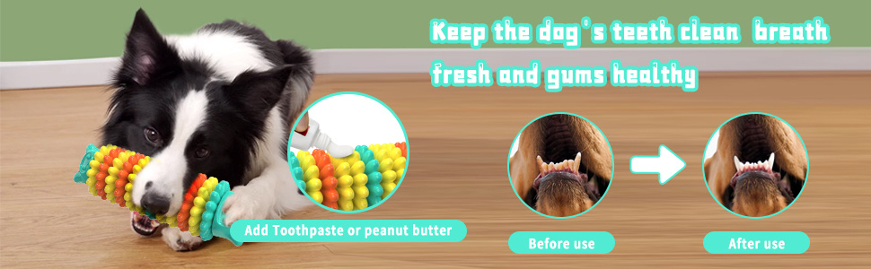 Toys for cleaning dog teeth: These durable dog toys offer a rewarding chewing sensation while also promoting dental hygiene and gum massage for a brighter smile. Smearing peanut butter on puppy chew toys can encourage your dog to chew.