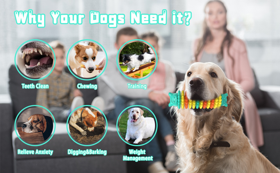 This interactive dog toy is perfect for dogs of all sizes, ranging from 20 to 80 pounds. It can serve as a thoughtful present for your beloved pets on their birthday or during the holiday season. This toy aids in dental training, enhances their cognitive abilities, alleviates separation anxiety, and minimizes the risk of furniture or shoe damage.