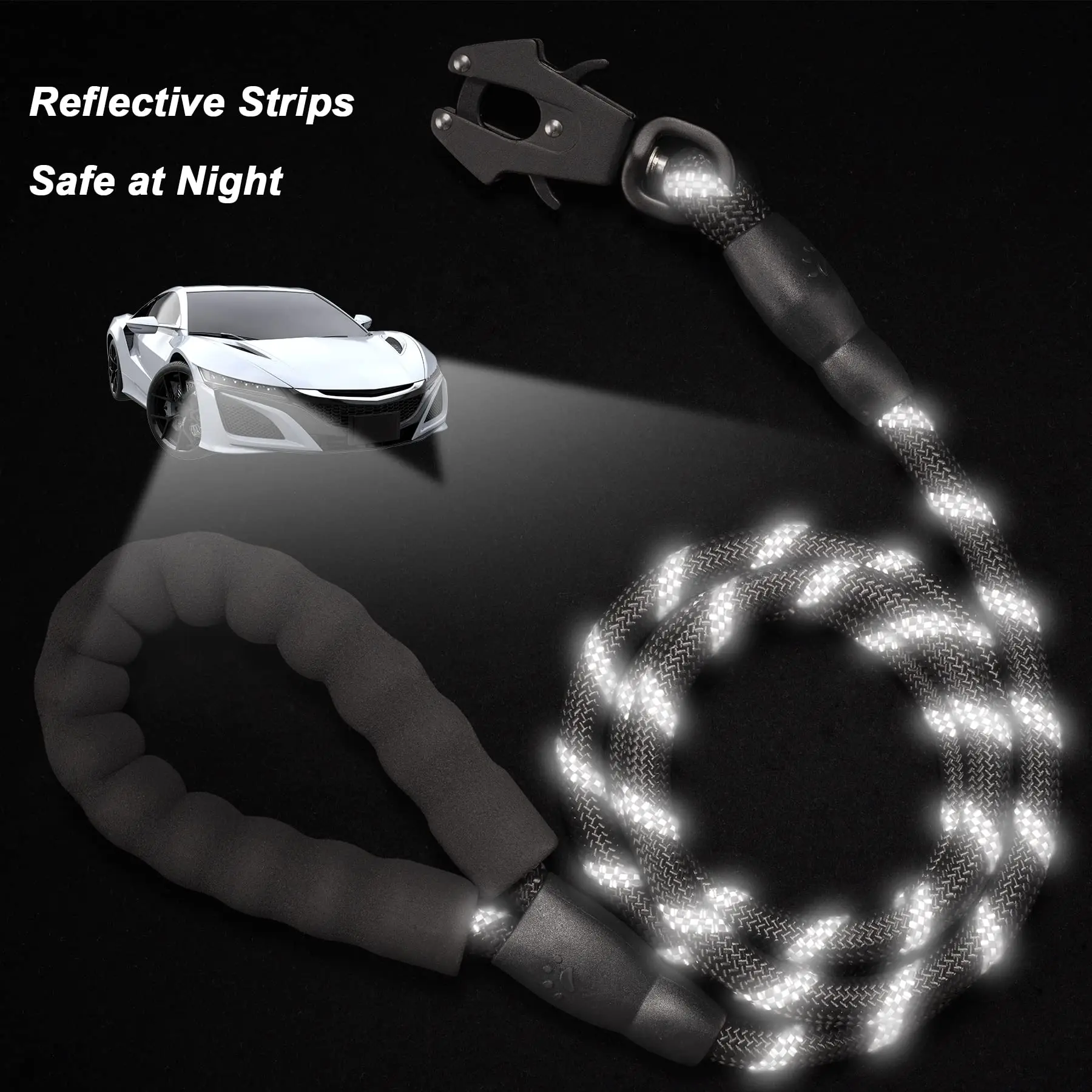 Heavy Duty Polyamide Dog Leash with Reflective Stripes - Tactical Frog Quick Release Clip, Locking Mechanism